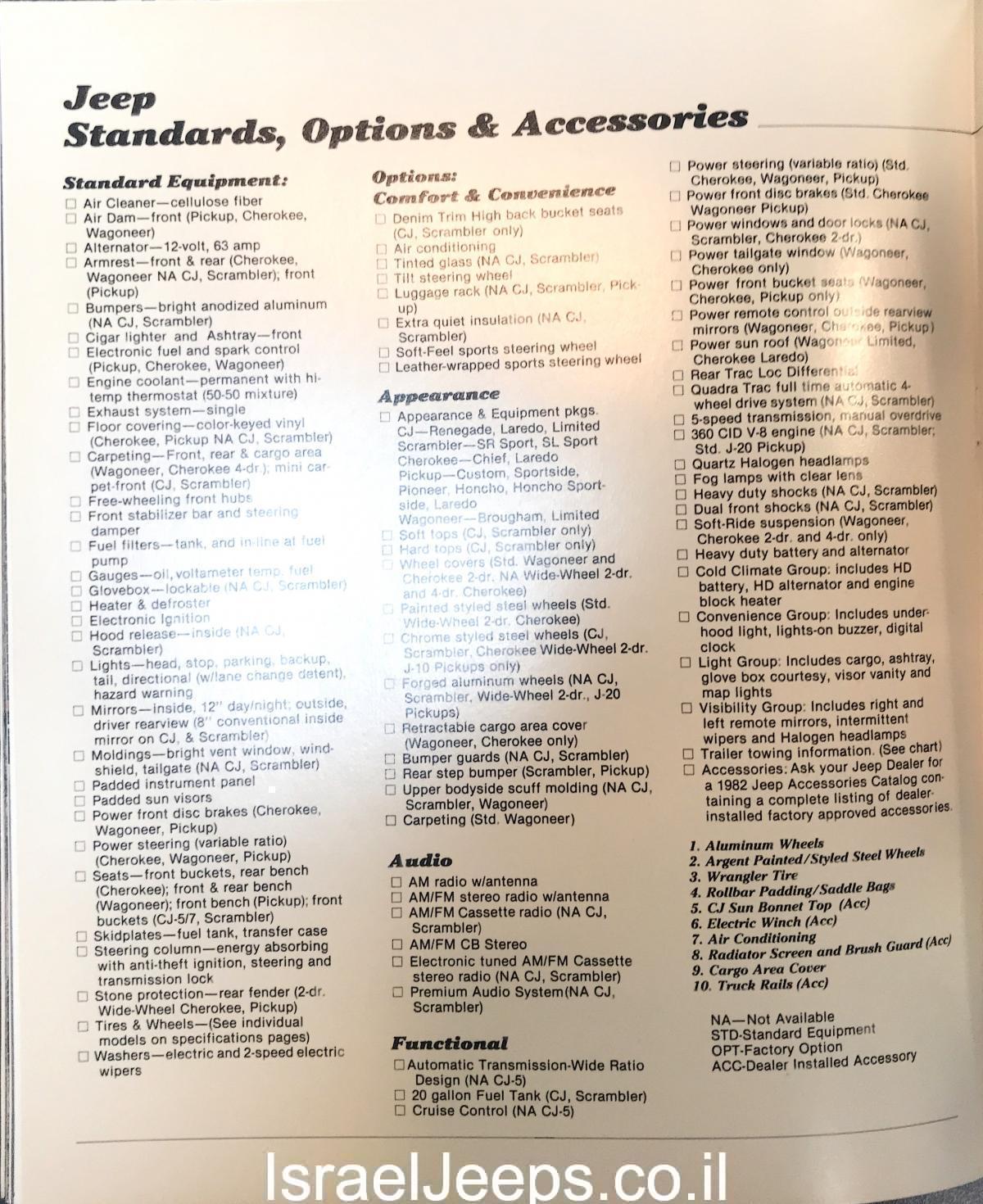 קטלוג אביזרי ג'יפ 1982